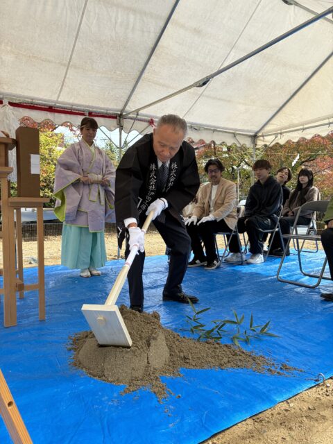 お施主様にも鍬入れの儀と玉串奉奠にご参加いただき、式は粛々と執り行われました。